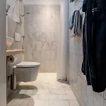 所有的洗澡间都配备吹风机,浴帽和毛巾.